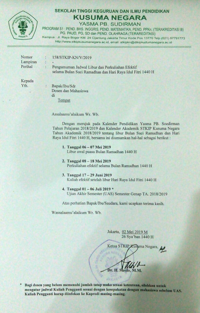 Jadwal Libur dan Perkuliahan Efektif selama Bulan Suci Ramadhan 1 Syawal 1440 H Leave a Comment / Agenda, Berita Kampus, Pengumuman / By admin